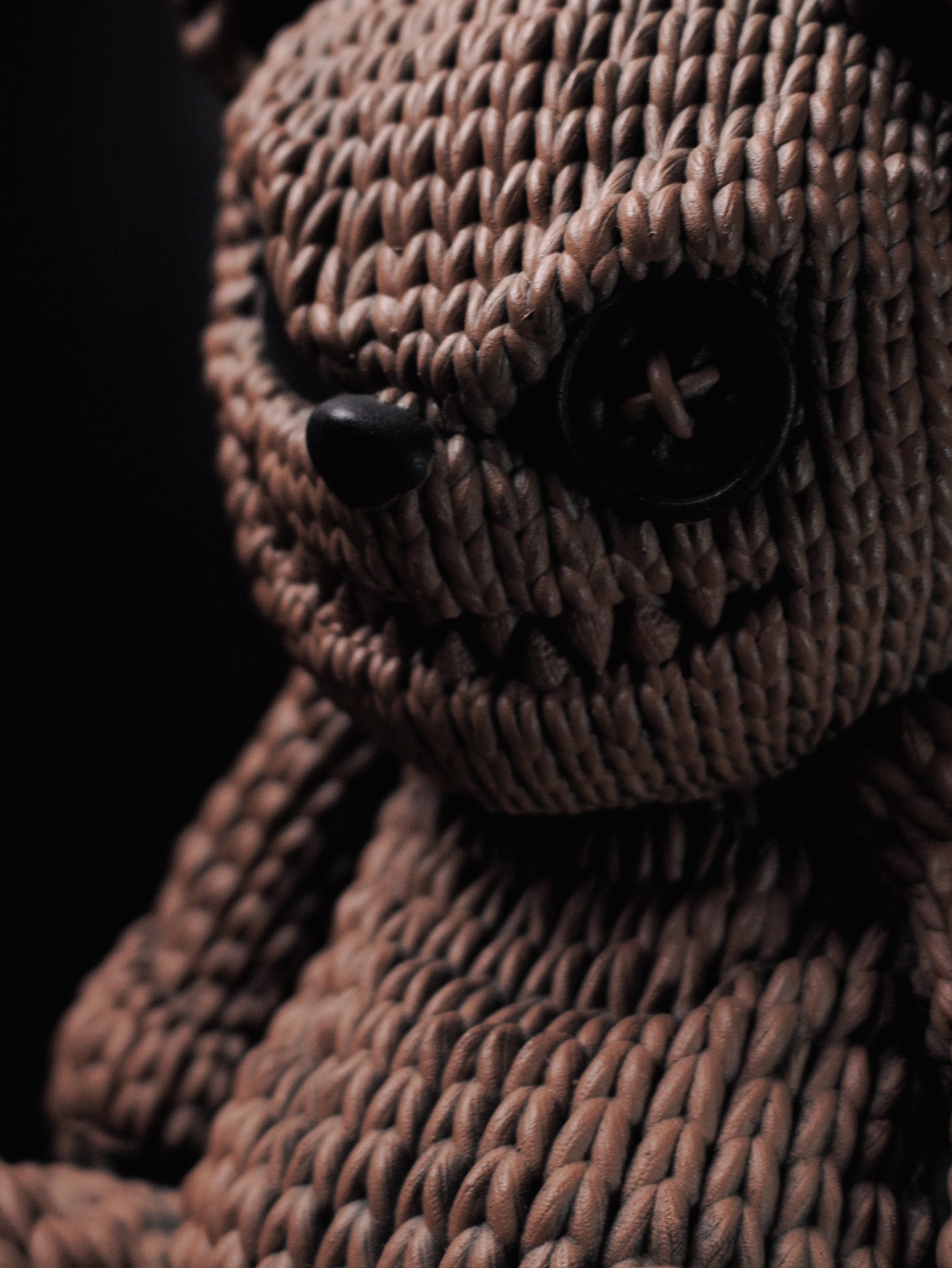 Quibble es parte de la colección Haunted Stuffed, donde lo adorable y lo tenebroso se encuentran. Cada pieza de esta serie ha sido esculpida con texturas de estambre y cicatrices de historias no contadas...